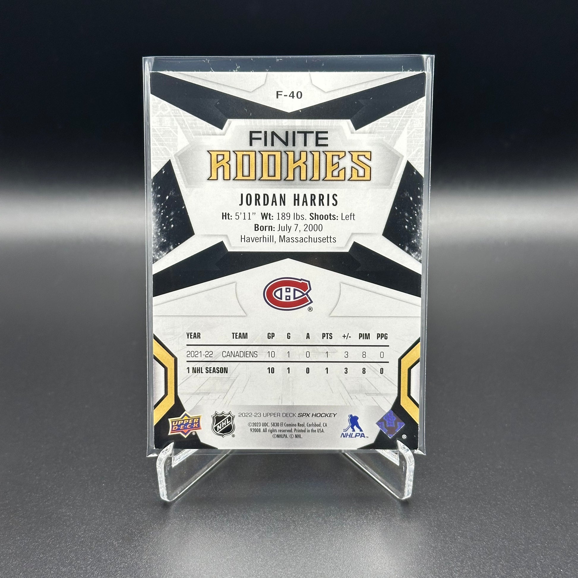 2022-23 UD SPx JORDAN HARRIS #F-40 Finite Rookies Platinum RC /99