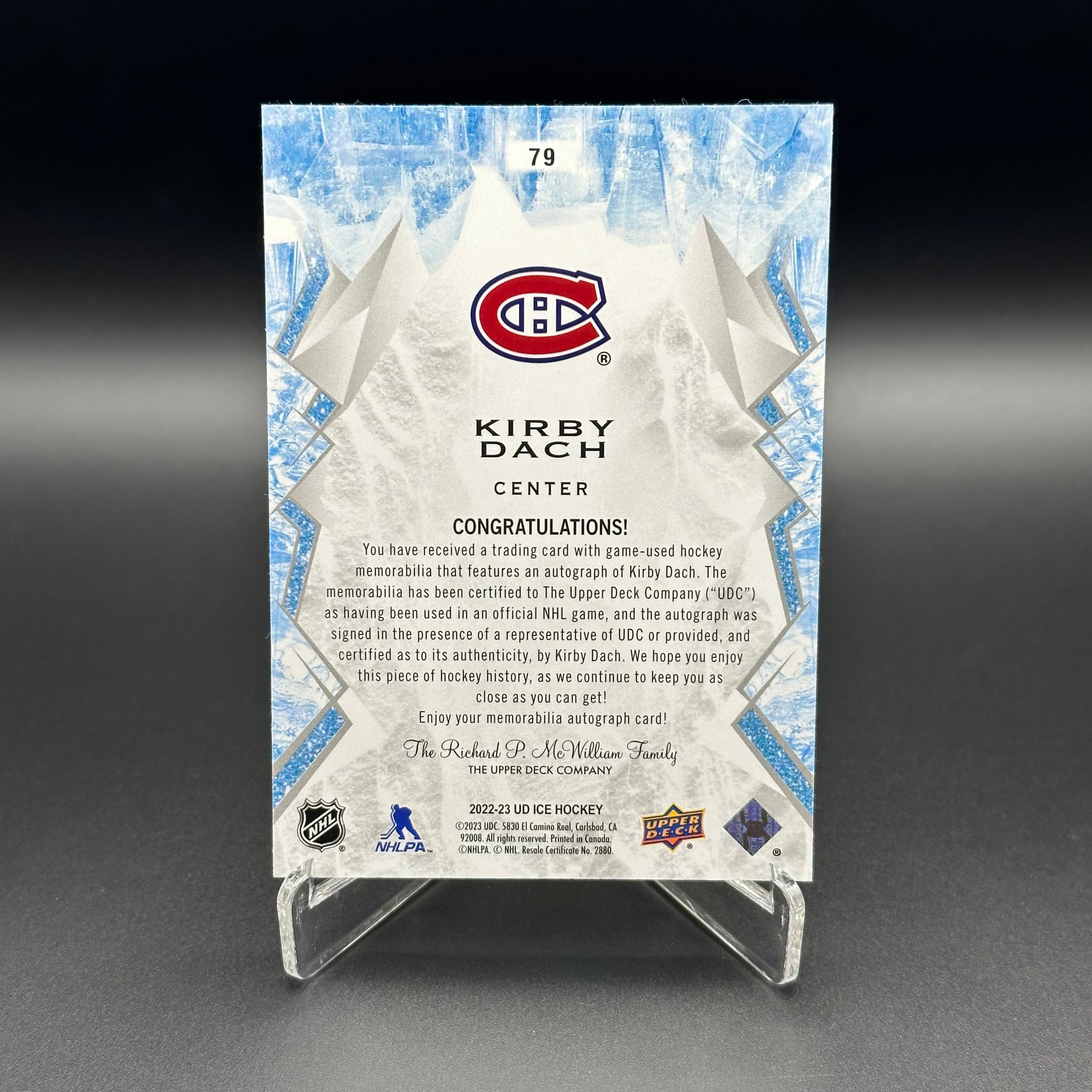 2022-23 Upper Deck Ice KIRBY DACH #79 Gold Patch Auto /49