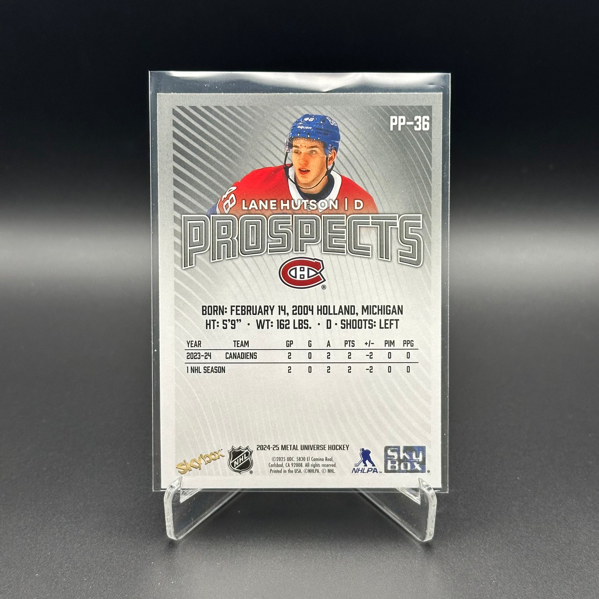 2024-25 SkyBox Metal Universe LANE HUTSON #PP-36 Prospects RC Rookie