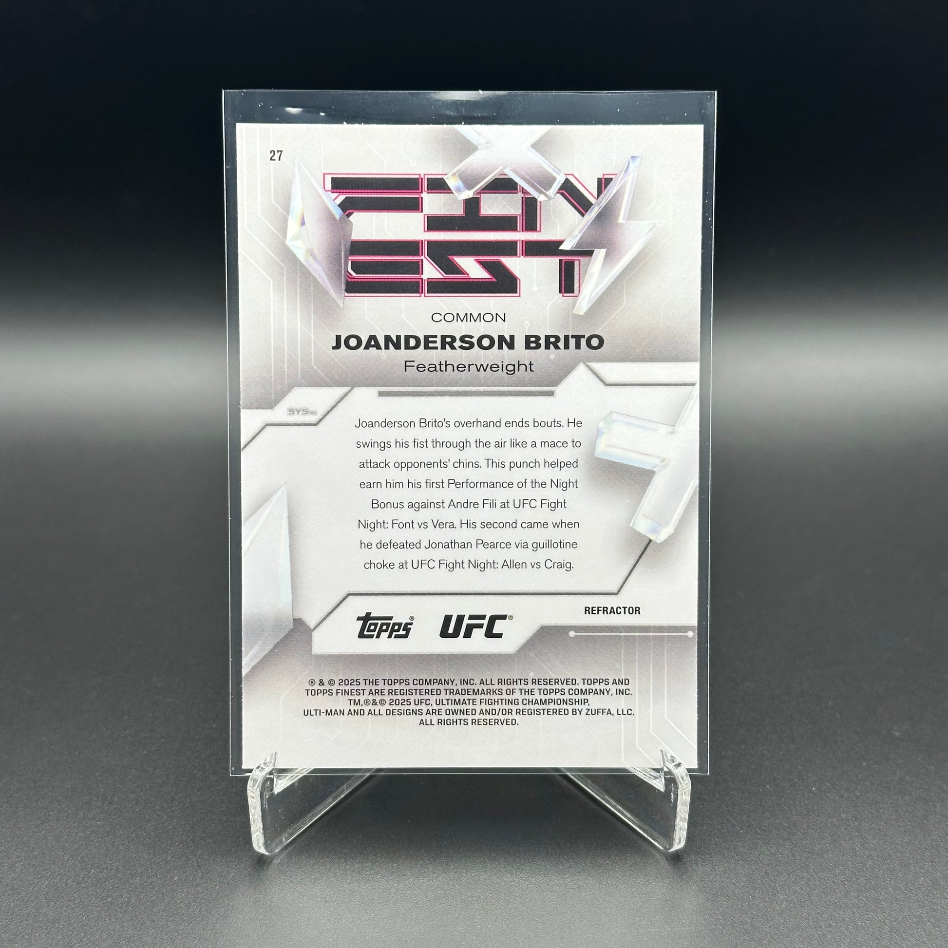 2025 Topps Finest UFC JOANDERSON BRITO #27 Refractor Rookie RC